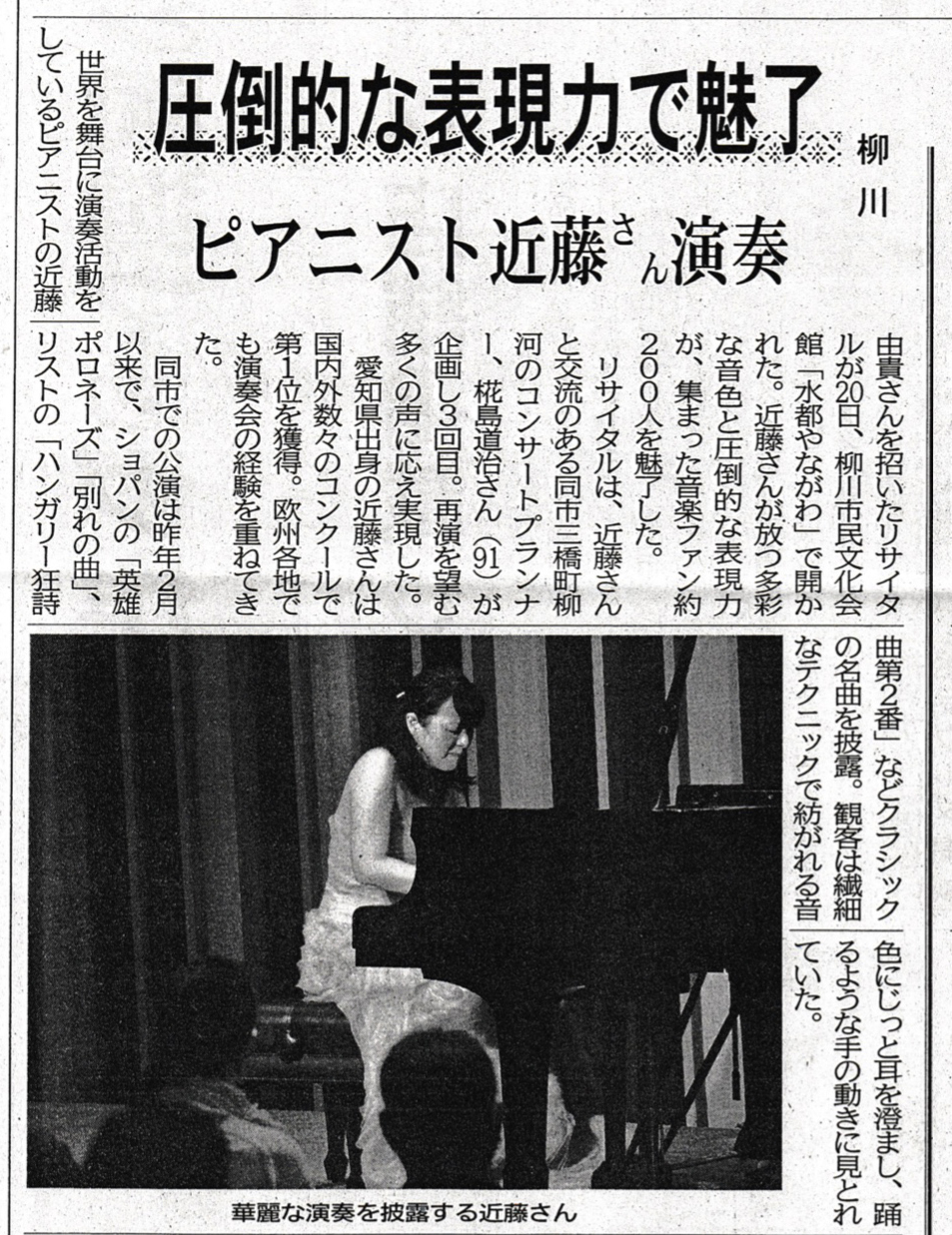 「近藤由貴の並外れたコンサートー日本人のピアニスト、聴衆を感動の渦に包み込んだ」とタイトルにて紹介。